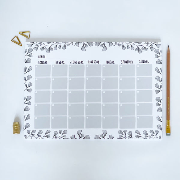 This illustrated monthly planner will help you organise your monthly tasks. This has no dates. You fill in the dates in the small wee circles and write the month on the header at the top. The pages are easy to tear off, pin on your wall or file in a binder.
