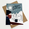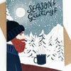 Embrace the enchanting beauty of a serene winter night with Season Greetings's Midnight Moonscape Greeting Card. This captivating card captures a tranquil scene featuring a man in a cozy woolly hat and beard, savoring a warm mug of coffee as he gazes over a breathtaking landscape of trees and mountains under the mesmerizing night sky adorned with a glowing moon and twinkling stars. Ideal for sending heartfelt messages during the holiday season or any special occasion, this card combines artistry and warmth to leave a lasting impression.